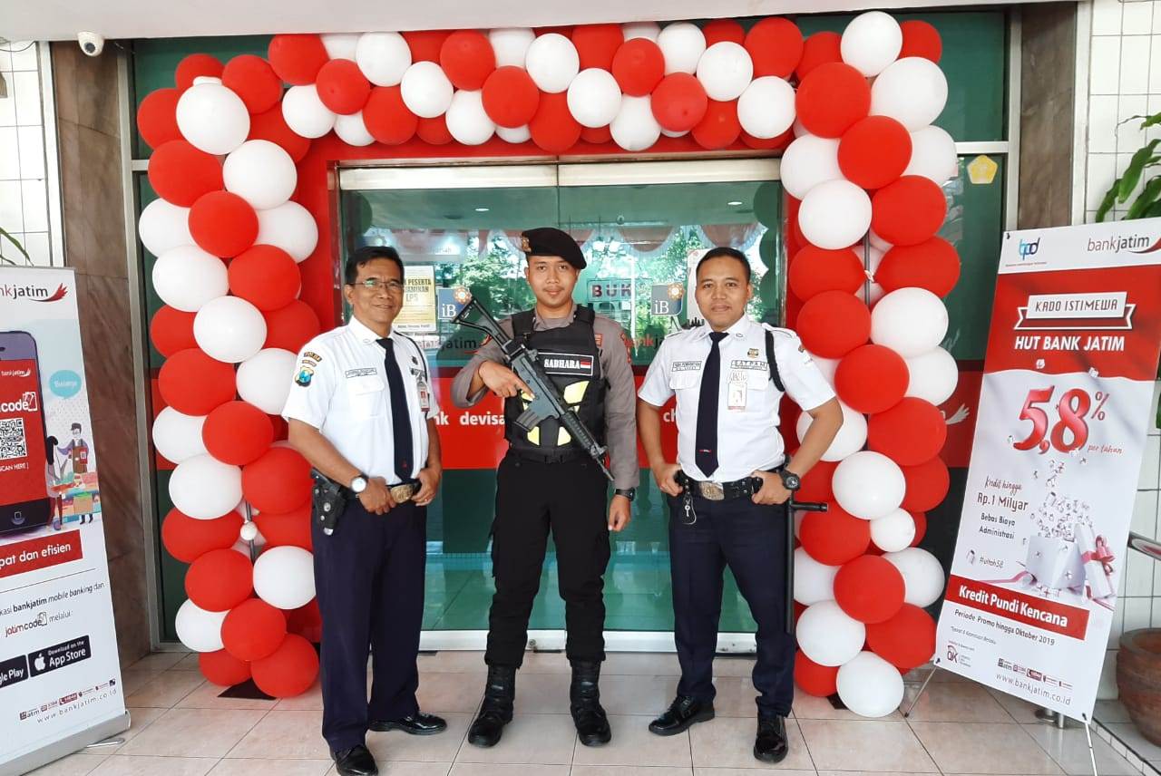 Kegiatan ini diantaranya dilakukan personil Satsabhara di kantor Bank Jatim, Jalan Perak Timur.