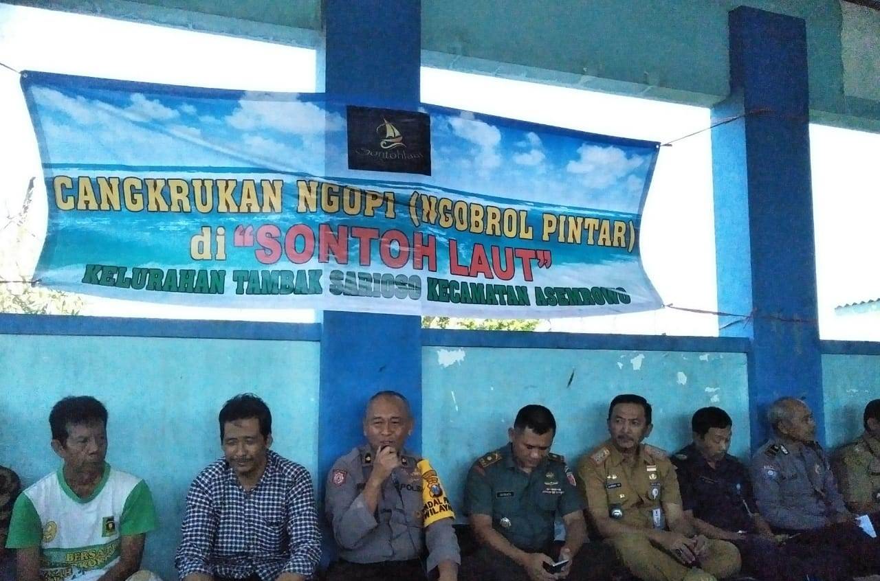 Seputarperak.com- Polsek Asemrowo, Polres Pelabuhan Tanjung Perak menggelar cangkrukan bersama Kelompok Nelayan Bunga Letari Sontoh Laut di RT 01 RW 04 Greges Barat, Kelurahan Tambak Sarioso.