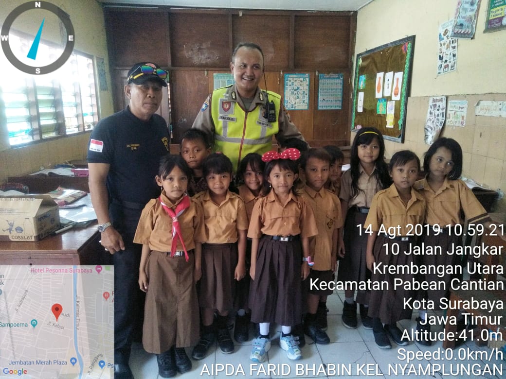 Seputarperak.com- Program Rabu Narsis digelar Aipda Farid, Babinkamtibmas Nyamplungan, Polsek Pabean Cantikan, Polres Pelabuhan Tanjung Perak di SDN Dapuan, Jalan Jangkar, Rabu pagi, 14 Agustus 2019.