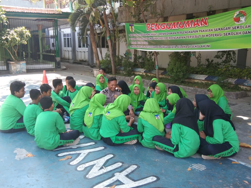 Seputarperak.com- Program Rabu Narsis dilaksanakan Aiptu Lagiman, Babinkamtibmas Tanah Kali (Takal) Kedinding, Polsek Kenjeran, Polres Pelabuhan Tanjung Perak di SMPN 15, Jalan M Noer, Rabu pagi, 21 Agustus 2019.