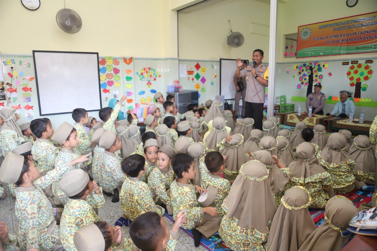 Hal ini pula yang dilakukan Wakapolres Pelabuhan Tanjung Perak, Kompol Ahmad Faisol Amir, S.I.K, Msi, dalam kunjungannya ke TK Aisyah, Jalan Bulak Sari, Rabu pagi, 21 Agustus 2019.