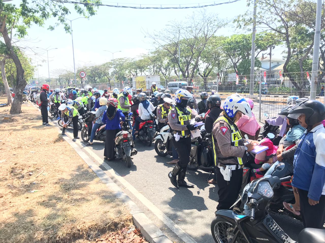 Puluhan pengendara sepeda motor terpaksa harus rela diberikan sanksi tilang karena terbukti melakukan pelanggaran.