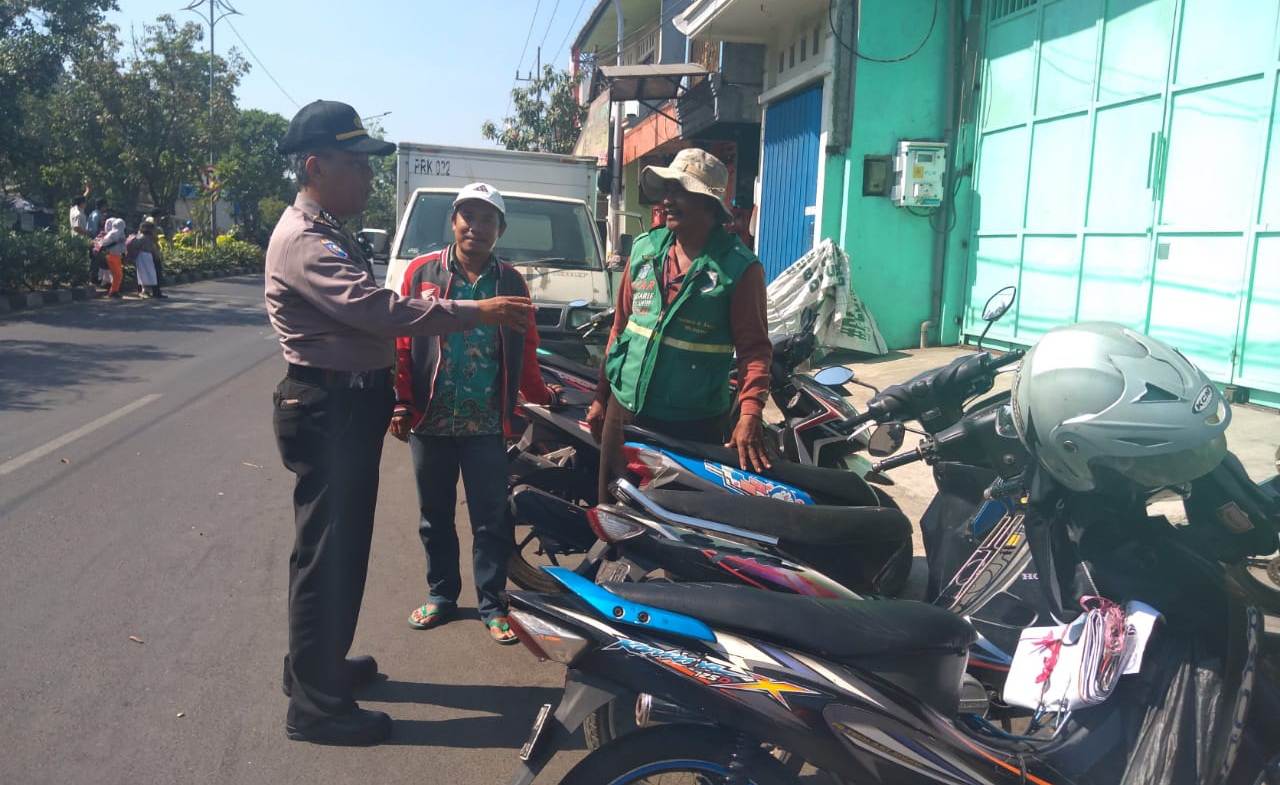 Seputarperak.com- Himbauan ketertiban disampaikan Ipda Munir, Panit Binmas Polsek Semampir, Polres Pelabuhan Tanjung Perak kepada petugas parkir di Jalan Sidotopo Lor.
