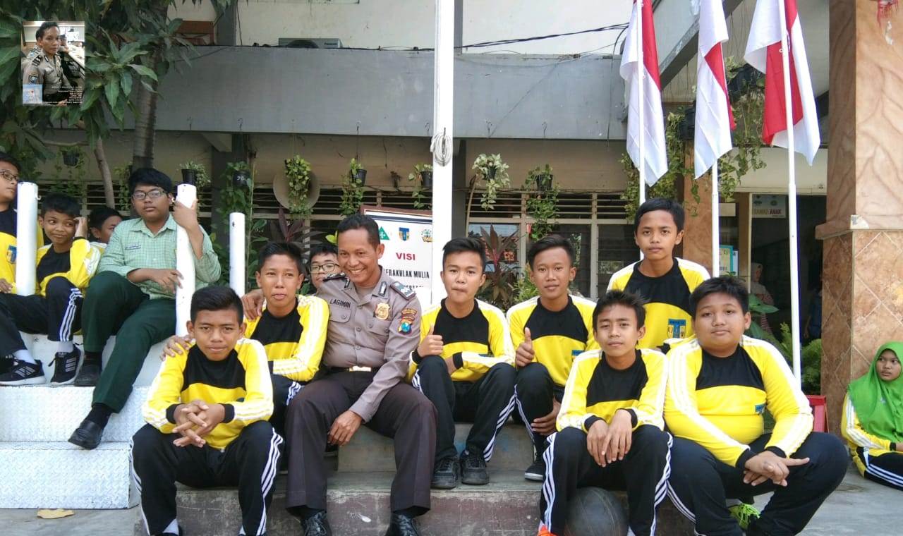 Seputarperak.com- Pesan positif disampaikan Aiptu Lagiman, Babinkamtibmas Tanah Kali (Takal) Kedinding, Polsek Kenjeran, Polres Pleabuhan Tanjung Perak kepada murid-murid SMPN 15 di Jalan M Noer.