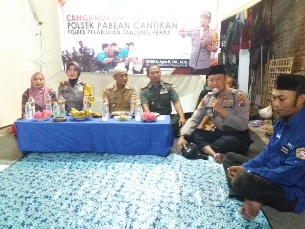 Seputarperak.com- Polsek Pabean Cantikan, Polres Pelabuhan Tanjung Perak menggelar kegiatan cangkrukan bersama wara Jalan Waspada gang II.