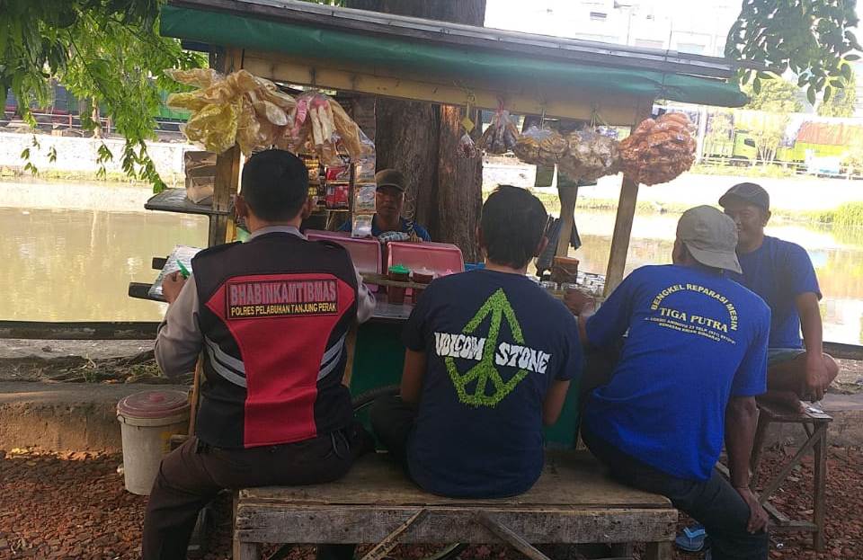 Seputarperak.com- Himbauan kerukunan disampaikan Aiptu Made Suarthana, Babinkamtibmas Bongkaran, Polsek Pabean Cantikan, Polres Pelabuhan Tanjung Perak kepada pengunjung warung di Jalan Semut Kali, Rabu pagi, 18 September 2019.