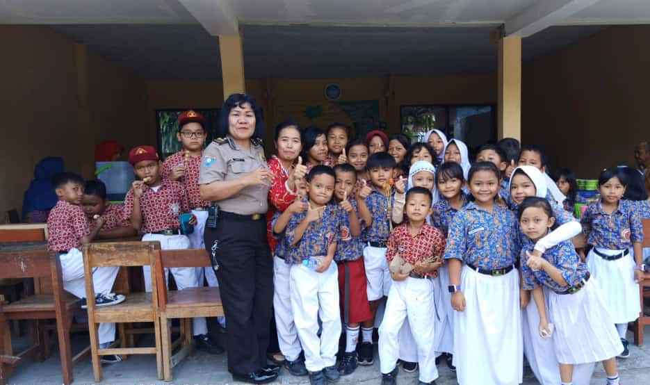 Seputarperak.com- Pesan kamtibmas disampaikan Iptu Rossa, Panit Binmas Polsek Krembangan, Polres Pelabuhan Tanjung Perak kepada murid-murid SDN Perak Barat, Rabu pagi, 18 September 2019.