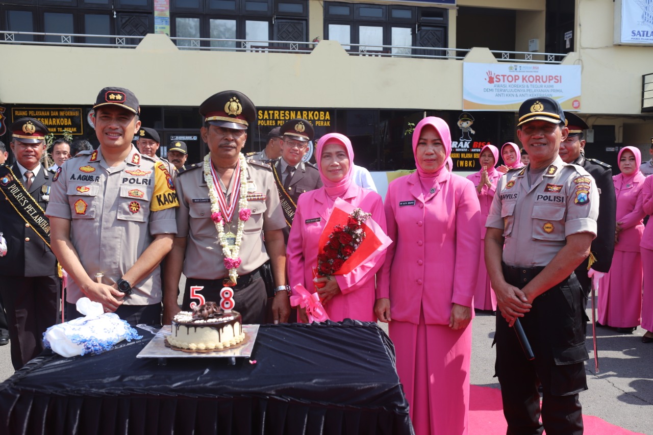 Usai upacara Kapolres memberikan hadiah keu ulang tahun untuk Ipda Waridjianto yang saat itu didampingi istri, guna memperingati ulang tahunnya yang ke 58 tahun.