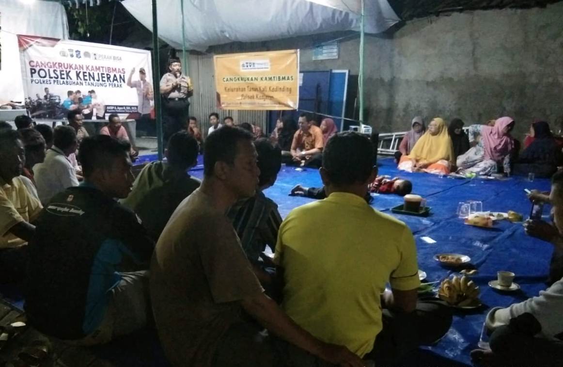 Seputarperak.com- Polsek Kenjeran, Polres Pelabuhan Tanjung Perak menggelar acara cangkrukan bersama warga RT 01 RW 02 Kelurahan Tanah Kali (Takal) Kedinding, Senin malam, 30 September 2019.