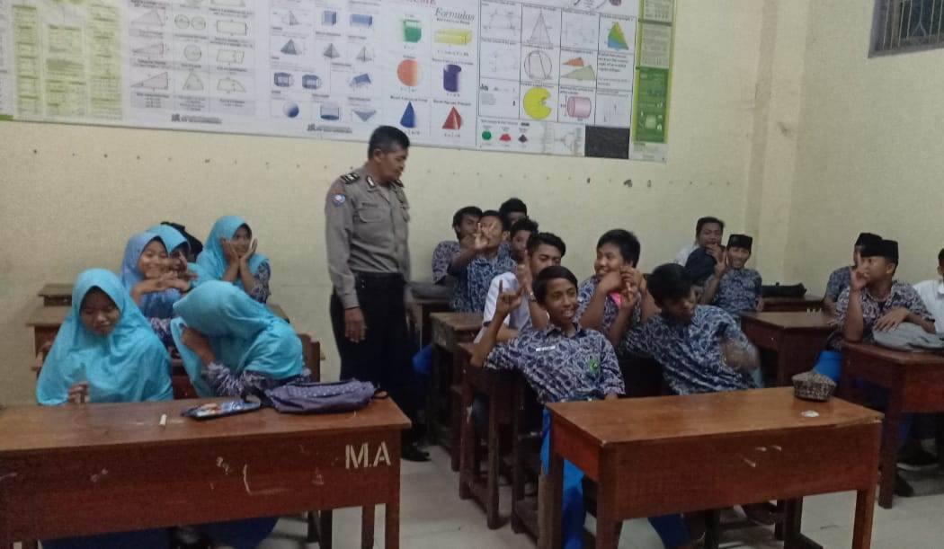 Seputarperak.com- Penyuluhan bahaya narkoba disampaikan Aiptu Muhadi Purnomo, Babinkamtibmas Sidotopo, Polsek Semampir, Polres Pelabuhan Tanjung Perak kepada murid-murid Madarasah Aliyah (MA) Ibnu Husein, Jalan Irawati, Rabu pagi, 9 Oktober 2019.