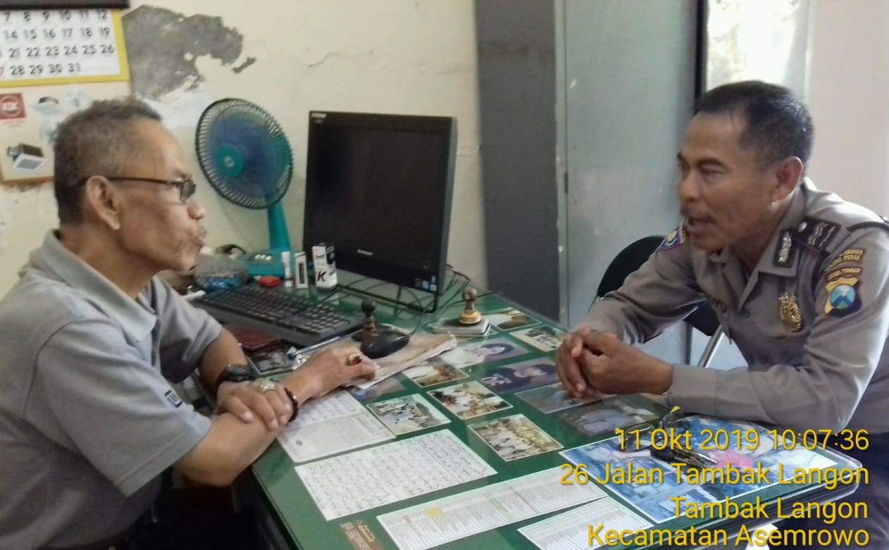Seputarperak.com- Koordinasi keamanan dilakukan Aiptu Suroyo, Babinkamtibmas Tambak Sarioso, Polsek Asemrowo, Polres Pelabuhan Tanjung Perak bersama staf kelurahan, Jumat pagi, 11 Oktober 2019.