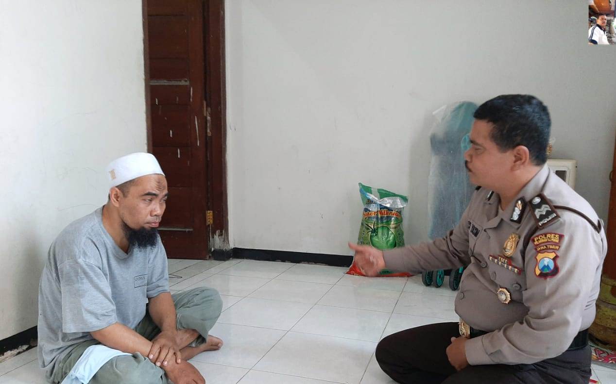 Seputarperak.com- Pesan kerukunan antar umat beragama disampaikan Aiptu M Yasin, Babinkamtibmas Krembangan Utara, Polsek Pabean Cantikan, Polres Pelabuhan Tanjung Perak kepada Ustad Nawawi, salah satu pengasuh Pondok Pesantren Wildanus Sholikin, Jalan Muteran.
