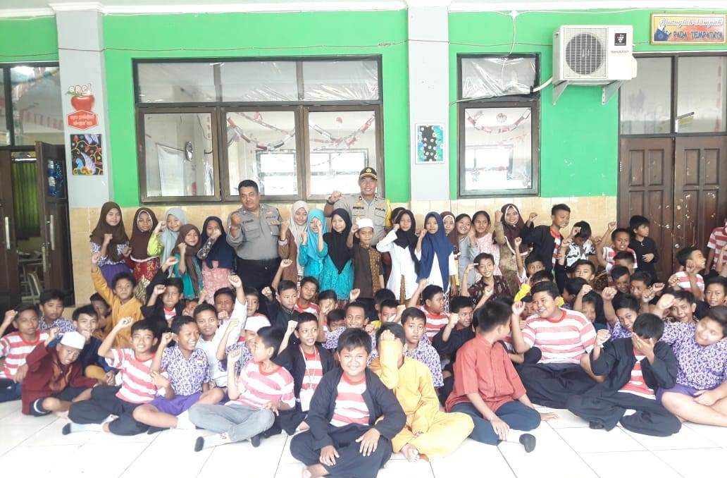 Saat itu Kapolsek yang didampingi Bripka Victor Sumbodo, Babinkamtibmas Ujung, Polsek Semampir menyampaikan pesan-pesan positif kepada para murid kelas VI.
