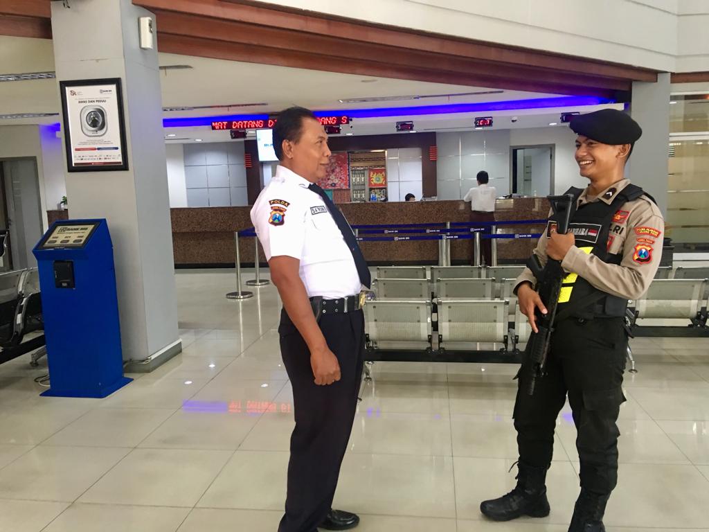 Seputarperak.com- Pengamanan dilakukan personil Satsabhara Polres Pelabuhan Tanjung Perak di kantor Bank BRI Jalan Prapat Kurung, Kamis, 17 Oktober 2019.