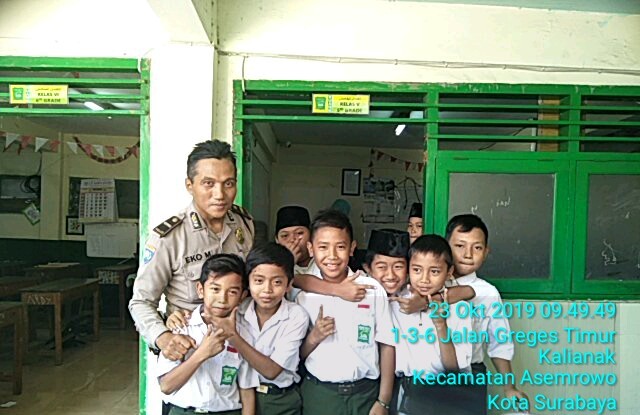 Seputarperak.com- Program Rabu Narsis dilaksanakan Ipda Eko Mustaghfirin, Panit Binmas Polsek Asemrowo, Polres Pelabuhan Tanjung Perak di Madarasah Ibtidaiyah (MI) Taman Jaya, Jalan Greges Timur, Kelurahan Tambak Sarioso.
