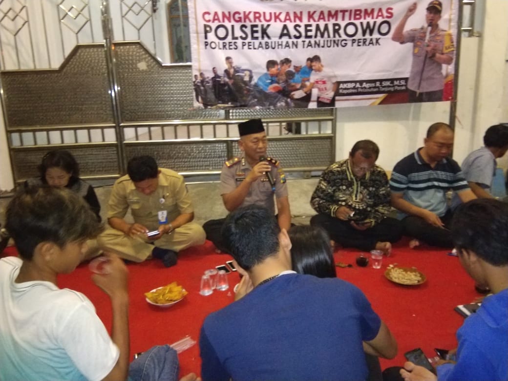 Seputarperak.com- Cangkrukan Senin Militan digelar Polsek Asemrowo, Polres Pelabuhan Tanjung Perak di Tambak Pring Timur RT 06 RW 06 Kelurahan Asemrowo, Senin malam, 28 Oktober 2019.