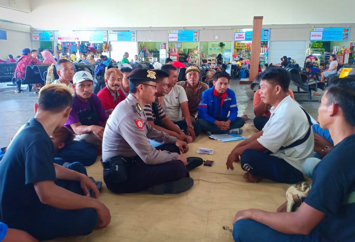 Saat itu selain melakukan pemantauan situasi keamanan di sekeliling lokasi, personil Satsabhara juga menyampaikan pesan-pesan kamtibmas kepada calon penumpang kapal yang sedang berada di ruang tunggu.
