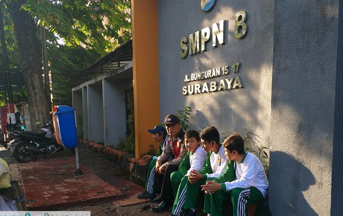 Seperti yang dilakukan Aiptu Made Suarthana, Babinkamtibmas Bongkaran, Polsek Pabean Cantikan, Polres Pelabuhan Tanjung Perak di SMPN 8, Jalan Bunguran, Rabu pagi, 13 Nopember 2019.