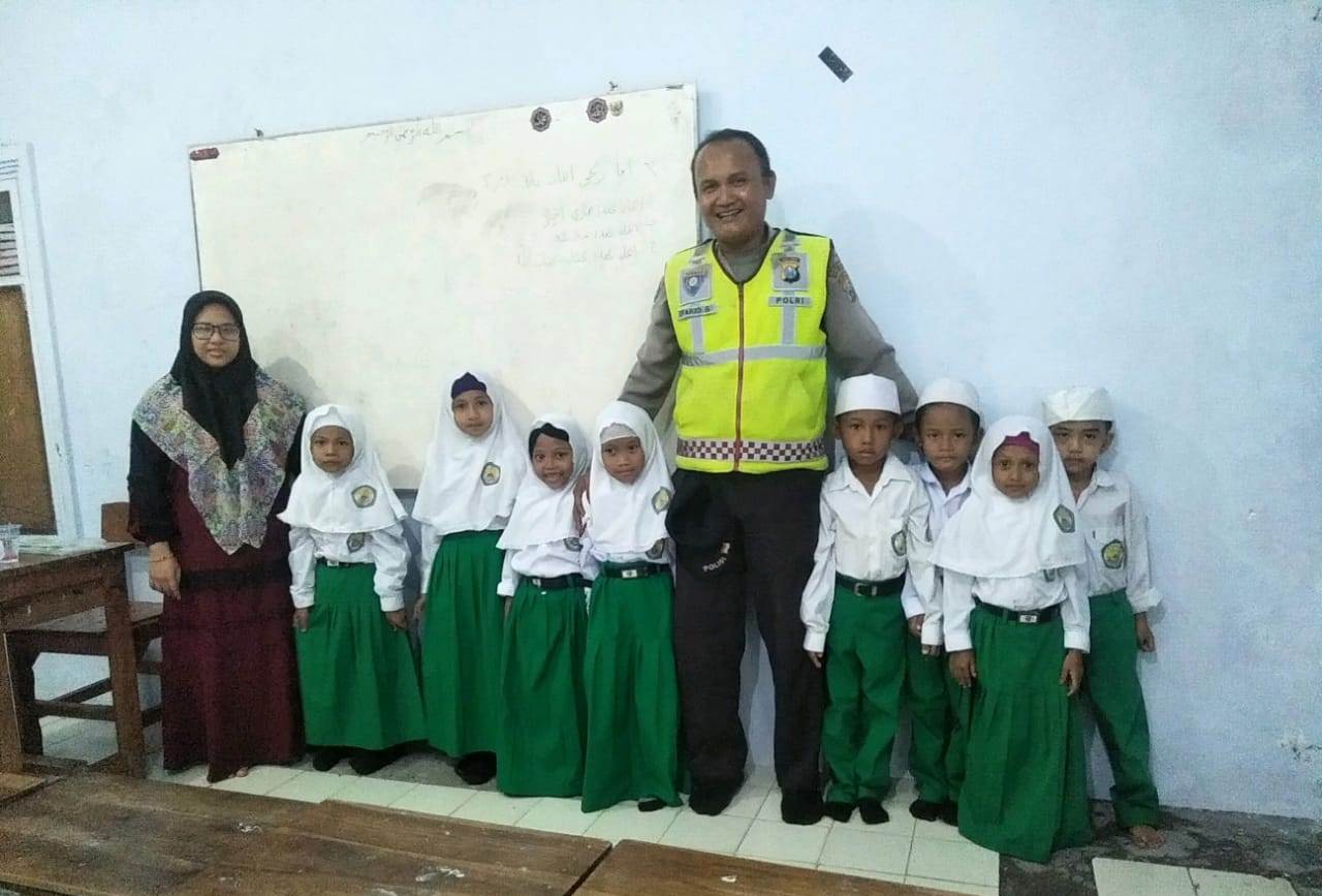 Aipda Farid menghimbau para murid untuk selalu rajin belajar dan menghormati para guru sebagai pengganti orangtua di sekolah.
