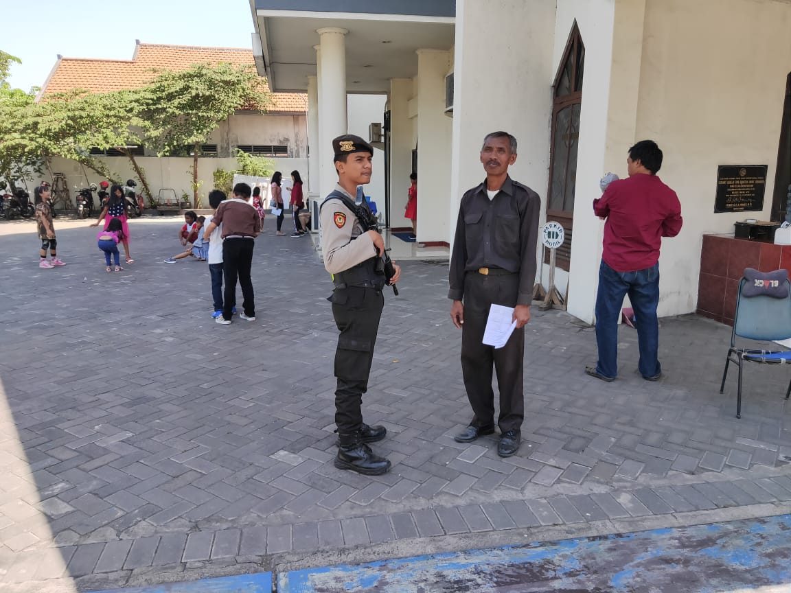 Seputarperak.com- Patroli dilakukan personil Satsabhara Polres Pelabuhan Tanjung Perak di Gereja Bahtera Hayat, Jalan Laksa M Nasir, Minggu pagi, 17 Nopember 2019.