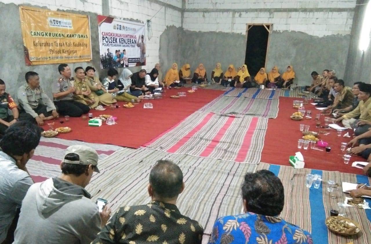 Seputarperak.com- Cangkrukan kamtibmas digelar Polsek Kenjeran, Polres Pelabuhan Tanjung Perak di Balai RW 10 Jalan Kalilom Lor Indah, Senin malam, 18 Nopember 2019.