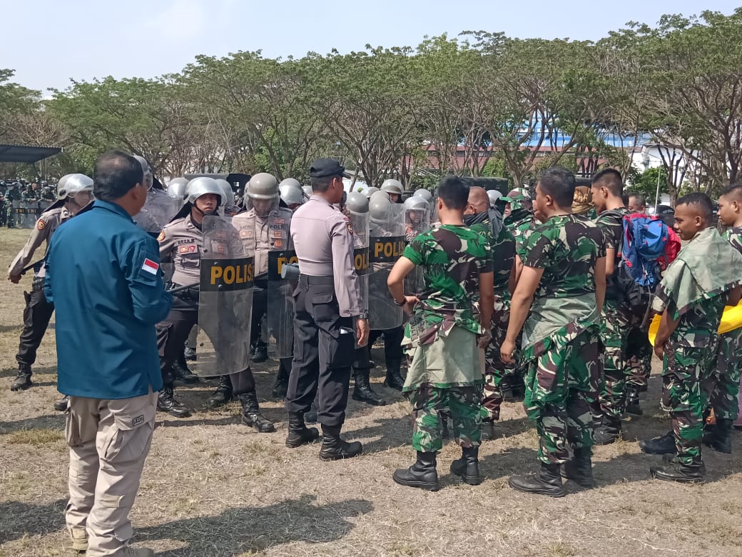Ratusan prajurit gabungan ini melakukan pelatihan untuk mengantisipasi huru-hara dan aksi teror yang berpotensi mengganggu kelancaran dan keamanan di pelabuhan.