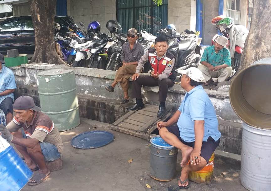 Seputarperak.com- Himbauan jaga ketertiban disampaikan Aiptu Made Suarthana, Babinkamtibmas Bongkaran, Polsek Pabean Cantikan, Polres Pelabuhan Tanjung Perak kepada sejumlah penjual drum di Jalan Waspada, Kamis pagi, 28 Nopember 2019.