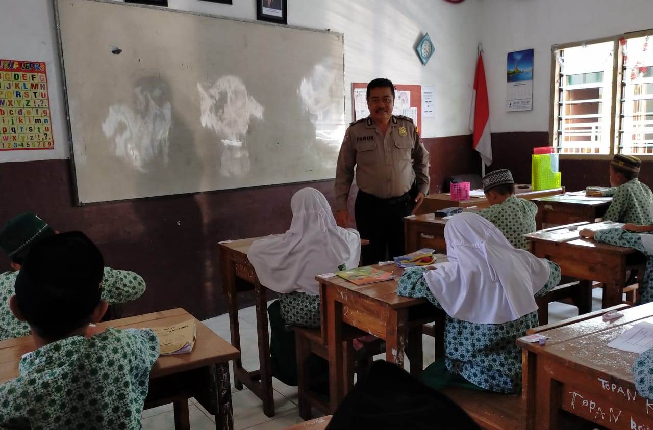 Seputarperak.com- Kunjungan dilakukan Aiptu Achmad Faruk, Babinkamtibmas Ampel, Polsek Semampir, Polres Pelabuhan Tanjung Perak di Madarasah Ibtidaiyah (MI) Miftahul Ulum, Jalan Nyamplungan gang 10, Rabu pagi, 4 Desember 2019.