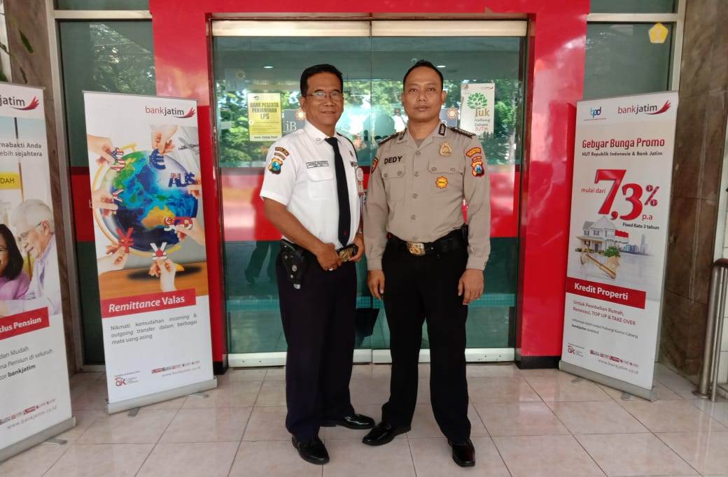 Seputarperak.com- Patroli dilakukan personil Satsabhara Polres Pelabuhan Tanjung Perak di kantor Bank Jatim, Jalan Perak Timur, Jumat pagi, 6 Desember 2019.