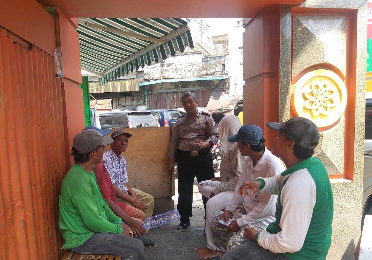 Seputarperak.com- Himbauan keselamatan disampaikan Aiptu Heru Winarto, Babinkamtibmas Perak Utara, Polsek Pabean Cantikan, Polres Pelabuhan Tanjung Perak kepada sejumlah kuli bangunan yang sedang mengerjakan proyek di pemukiman Kalimas Baru, Rabu pagi, 11 Desember 2019.