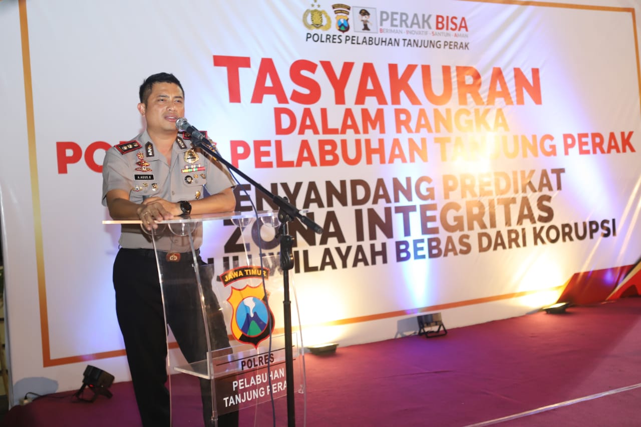 Seputarperak.com- Acara tasyakuran menyambut keberhasilan memperoleh predikat Zona Integritas (ZI) Wilayah Bebas Korupsi (WBK) digelar Polres Pelabuhan Tanjung Perak, Kamis malam, 12 Desember 2019.