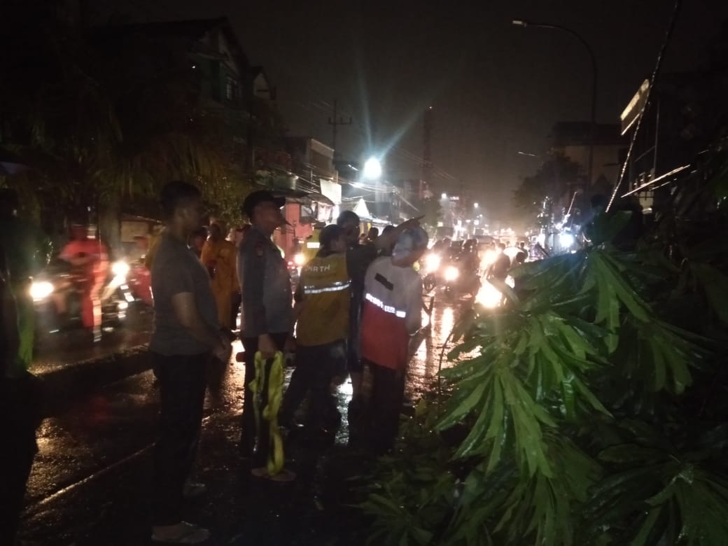 Saat itu evakuasi pohon tumbang dibantu oleh anggota Polsek Semampir dan anggota Jasa Marga.
