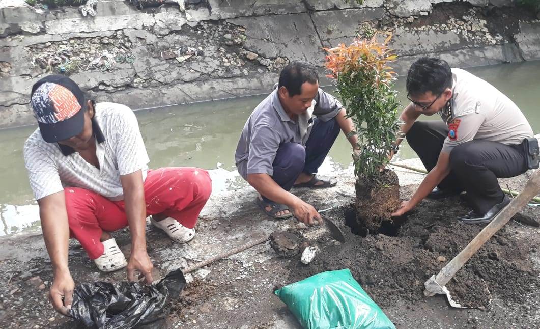 Seputarperak.com- Penanaman pohon dilaksanakan anggota Polsek Semampir, Polres Pelabuhan Tanjung Perak di samping Mapolsek, Jumat pagi, 10 Januari 2020.