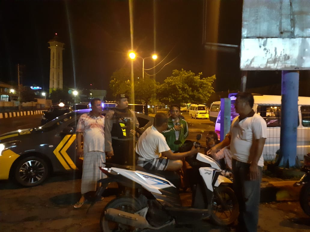 Seputarperak.com- Patroli dialogis dilakukan personil Satsabhara Polres Pelabuhan Tanjung Perak bersama sejumlah sopir angkot di Terminal Ujung, Sabtu malam, 11 Januari 2020.