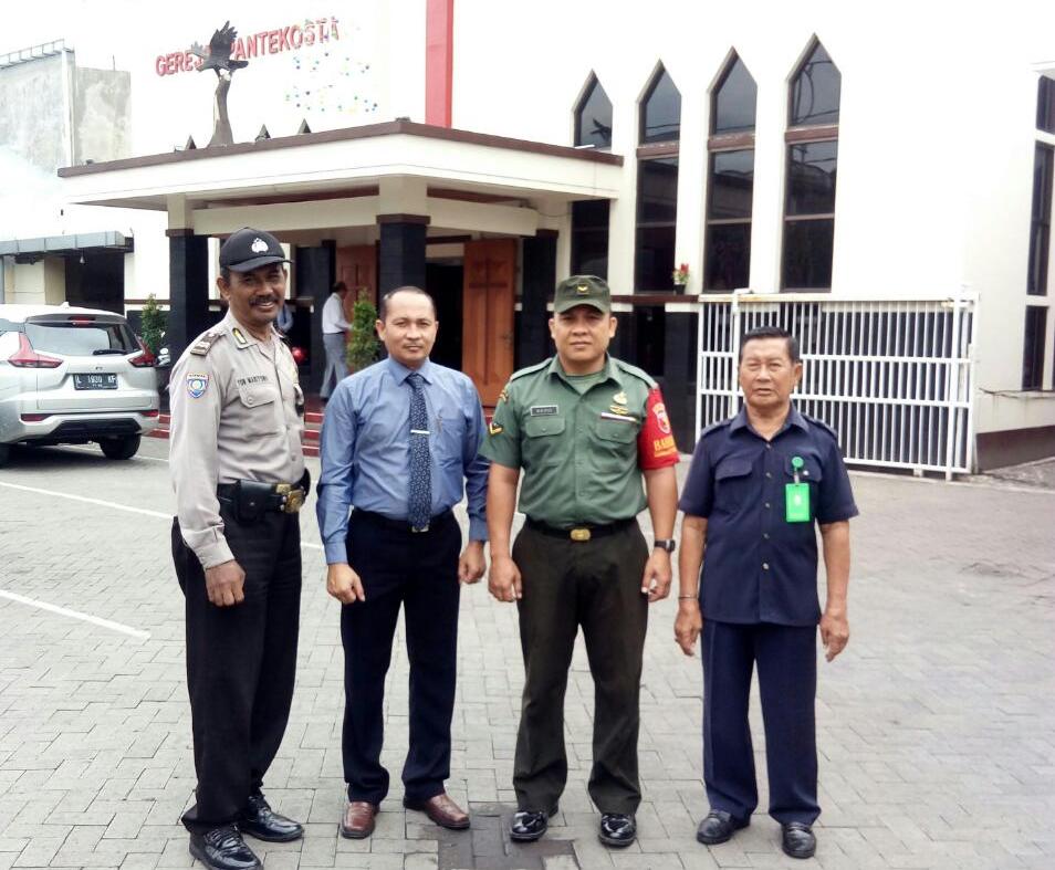 Seputarperak.com- Pengamanan kebaktian dilakukan Aiptu Marijono, Babinkamtibmas Perak Timur, Polsek Pabean Cantikan, Polres Pelabuhan Tanjung Perak di Gereja Pantekosta, Jalan Rajawali, Minggu pagi, 12 Januari 2020.
