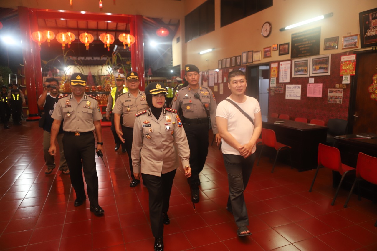 Seputarperak.com- Untuk menjaga keamanan perayaan Imlek, Polres Pelabuhan Tanjung Perak melaksanakan patroli skala besar di klenteng-klenteng yang ada di wilayahnya, Jumat malam, 24 Januari 2020. Kegiatan ini dipimpin langsung Kapolres AKBP Ganis Setyaningrum, S.Si, MH.
