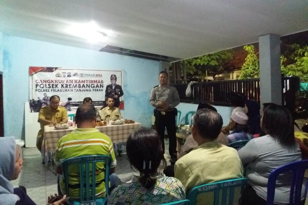 Seputarperak.com- Polsek Kenjeran, Polres Pelabuhan Tanjung Perak menggelar acara cangkrukan bersama warga Jalan Tanjung Layar RT 05 RW 08, Senin malam, 17 Pebruari 2020.