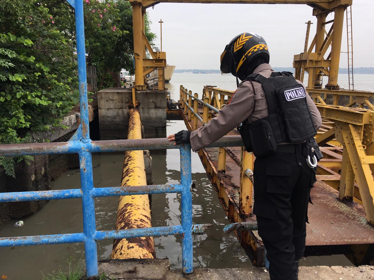 Seputarperak.com- Anggota Satsabhara Polres Pelabuhan Tanjung Perak melaksanakan pengecekan debit air di Pelabuhan Kalimas, Sabtu pagi, 29 Pebruari 2020.