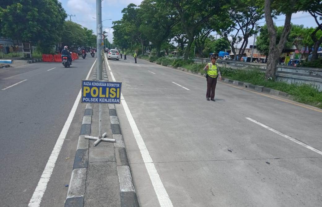 Seputarperak.com- Polsek Kenjeran, Polres Pelabuhan Tanjung Perak melaksanakan operasi cipta kondisi (Cipkon) di akses Jembatan Suramadu, Jalan H.M Noer, Selasa siang, 17 Maret 2020.