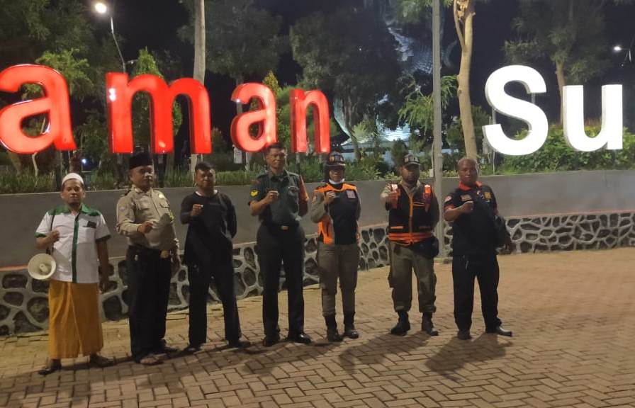 Seputarperak.com- Patroli gabungan dilaksanakan Aiptu Puji Sugiarto, Babinkamtibmas Kedung Cowek, Polsek Kenjeran, Polres Pelabuhan Tanjung Perak bersama Satpol PP, Babinsa dan warga di seputaran Taman Suroboyo, Kamis malam, 19 Maret 2020.