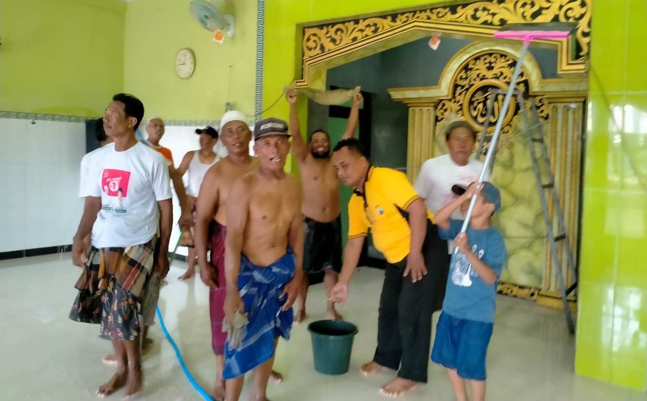 Seperti halnya yang dilakukan Aiptu Puji Sugiarto, Babinkamtibmas Kedung Cowek, Polsek Kenjeran, Polres Pelabuhan Tanjung Perak saat terlibat kegiatan kerja bakti di Mushola Bidrotul Kotilah di lingkungan RW 02, Jumat pagi, 20 Maret 2020.