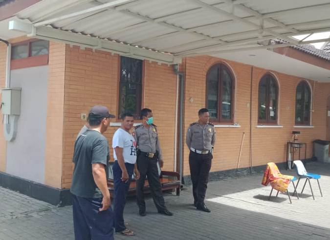 Seputarperak.com- Patroli dilakukan personil Polsek Kenjeran, Polres Pelabuhan Tanjung Perak di Gereja Santo Marinus, Jaan S Memet, komplek AL Kenjeran, Minggu pagi, 22 Maret 2020.