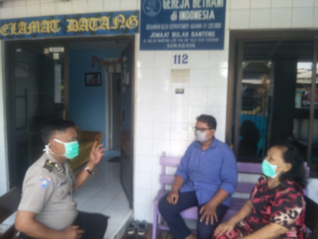 Seputarperak.com- Kunjungan dilakukan Ipda Dwi Rahardjo, Kanit Binmas Polsek Kenjeran, Polres Pelabuhan Tanjung Perak di Gereja Bethani, Jalan Bulak Banteng Lor, Minggu siang, 22 Maret 2020.