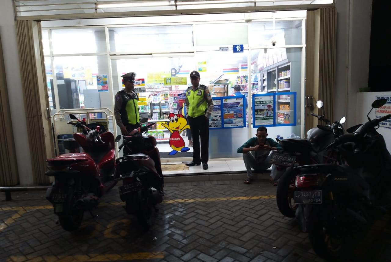 Seperti halnya yang dilakukan personil Unit Lantas dan Unit Sabhara Polsek Pabean Cantikan di mini market Indomart, Jalan Waspada, Rabu malam, 25 Maret 2020.