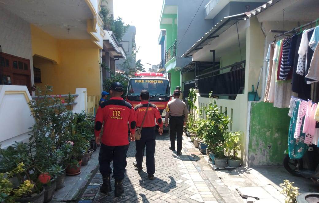 Seputarperak.com- Penyemprotan antiseptic dilakukan anggota pemadam kebakaran (Damkar) di RT 1 RW 12 Jalan Kedinding Tengah Jaya, Senin pagi, 30 Maret 2020.