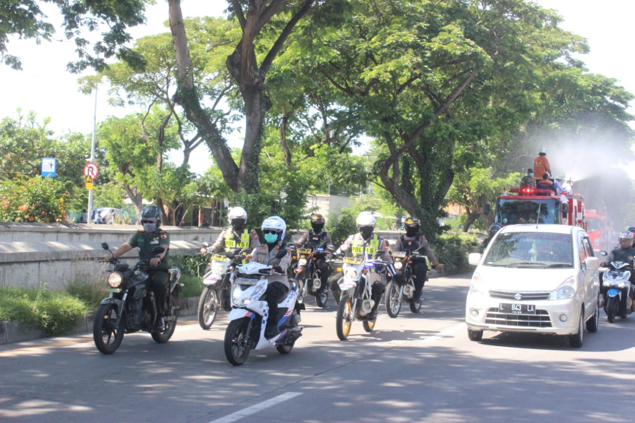 Diterangkan Kapolres Pelabuhan Tanjung Perak, AKBP Ganis Setyaningrum, S.Si, MH yang memimpin langsung jalannya kegiatan penyemprotan dengan mengendarai sepeda motor dinas ini, aksi penyemprotan dilakukan dalam rangka mencegah penyebaran virus corona.
