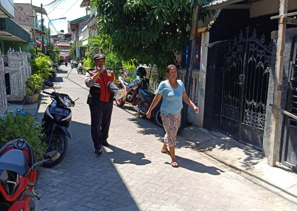 Saat itu dengan menggunakan pengeras suara, Aiptu Heru juga menghimbau warga untuk menjaga jarak dengan orang lain atau social distancing.