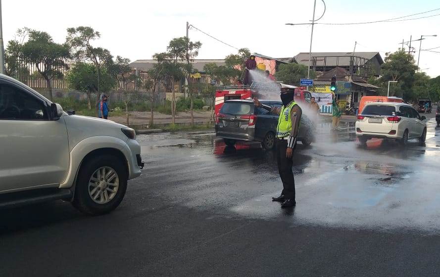 Kegiatan penyemprotan tersebut ditujukan untuk mencegah penyebaran virus corona atau Covid-19 yang dibawa kendaraan dari luar kota.