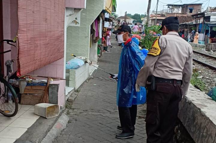 Diterangkan Kapolsek Semampir, Kompol Aryanto Agus, penyemprotan disinfektan ini rutin dilakukan setiap hari di kampung-kampung di wilayahnya.