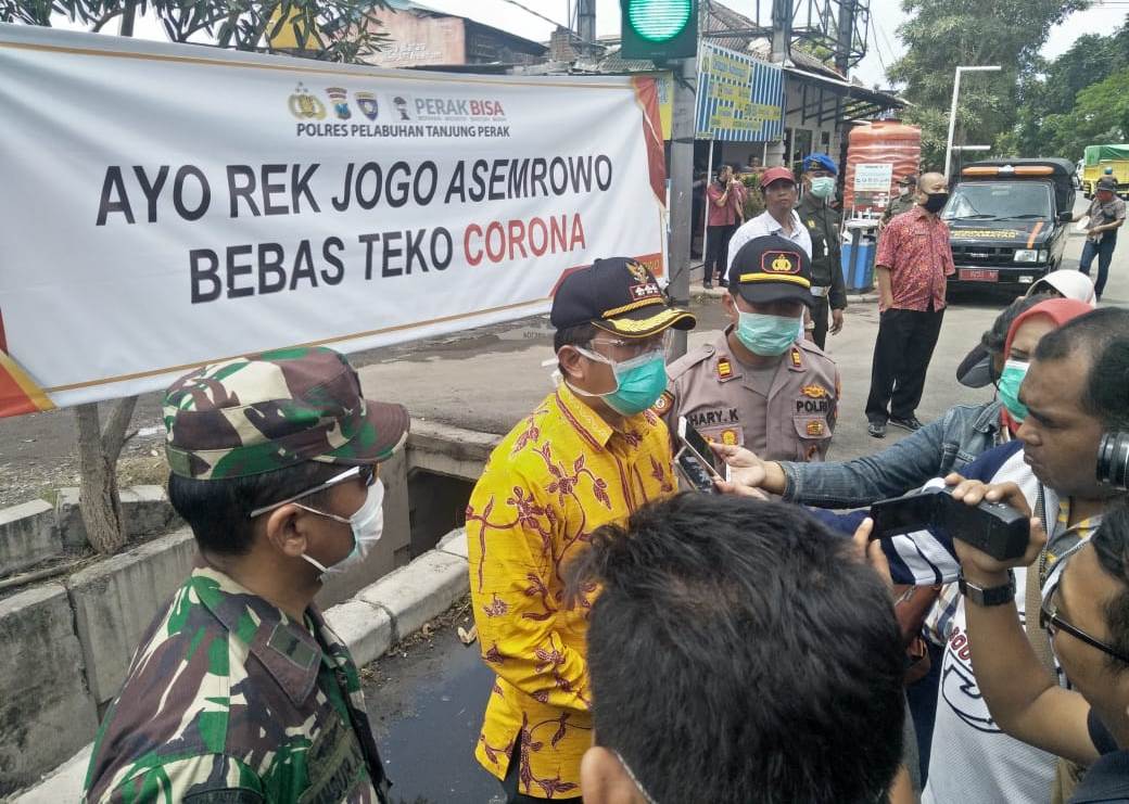 Kegiatan yang diikuti anggota Polsek Asemrowo, pegawai kelurahan dan Koramil Tandes ini bertujuan untuk mencegah penyebaran virus corona.